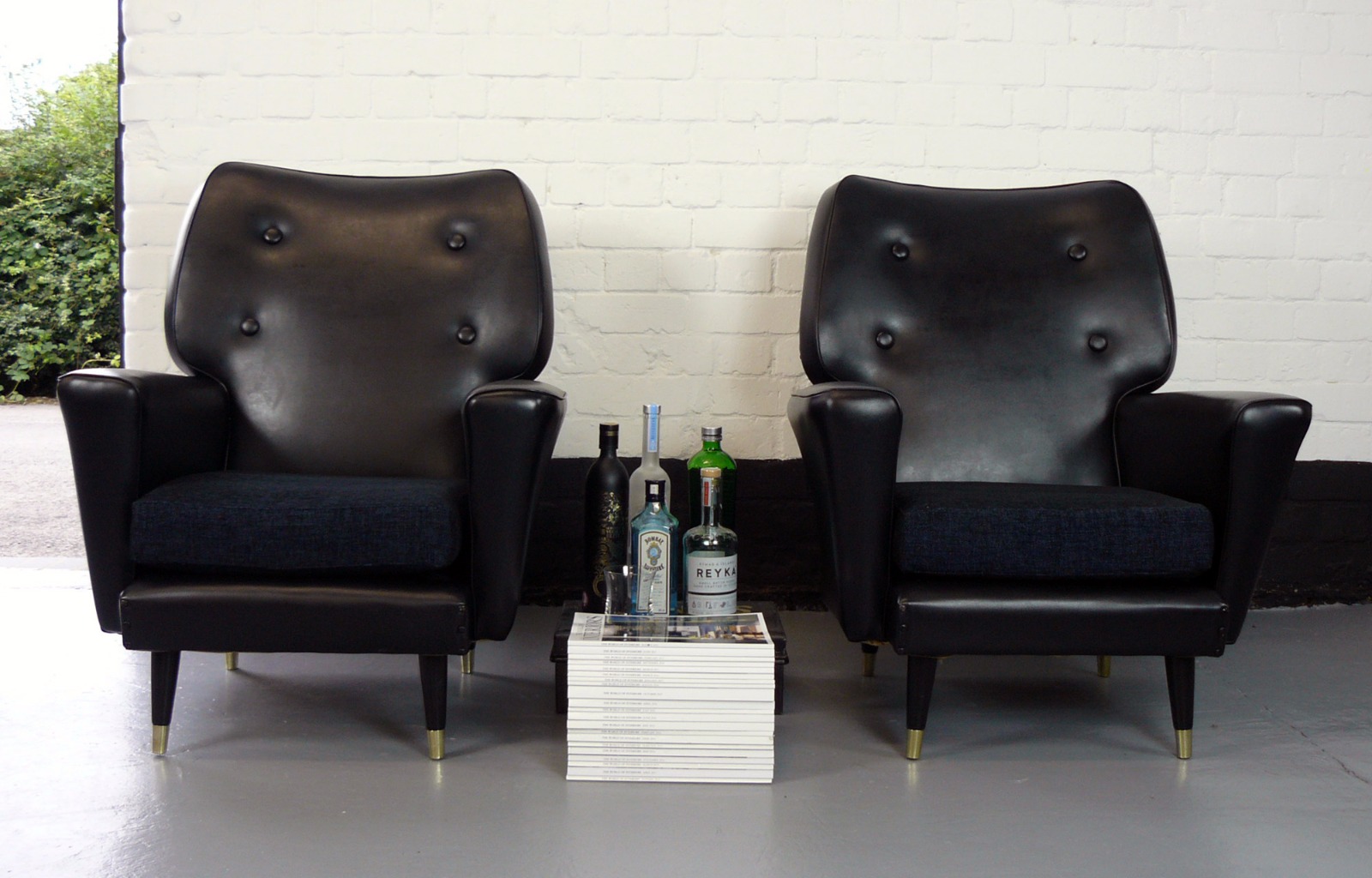 Good Pair of Mid Century 1950s Black Armchairs with New Seat Cushions (1 of 1)