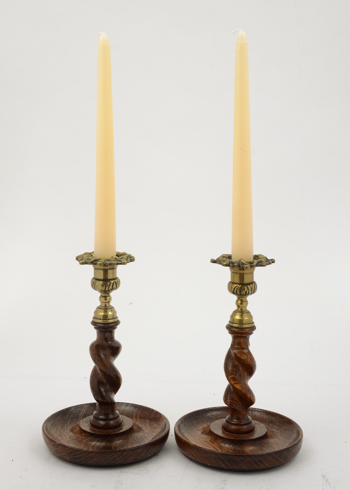 Good Pair of Oak Barley Twist Candlesticks c.1920