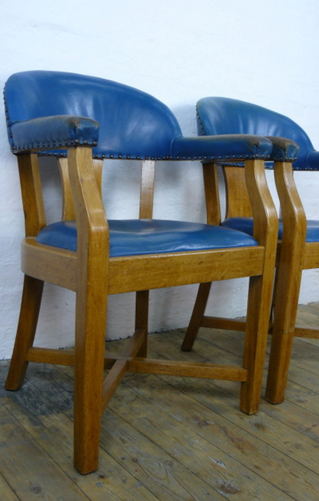 Good Pair of Oak & Leather Boardroom Library Chairs c.1950