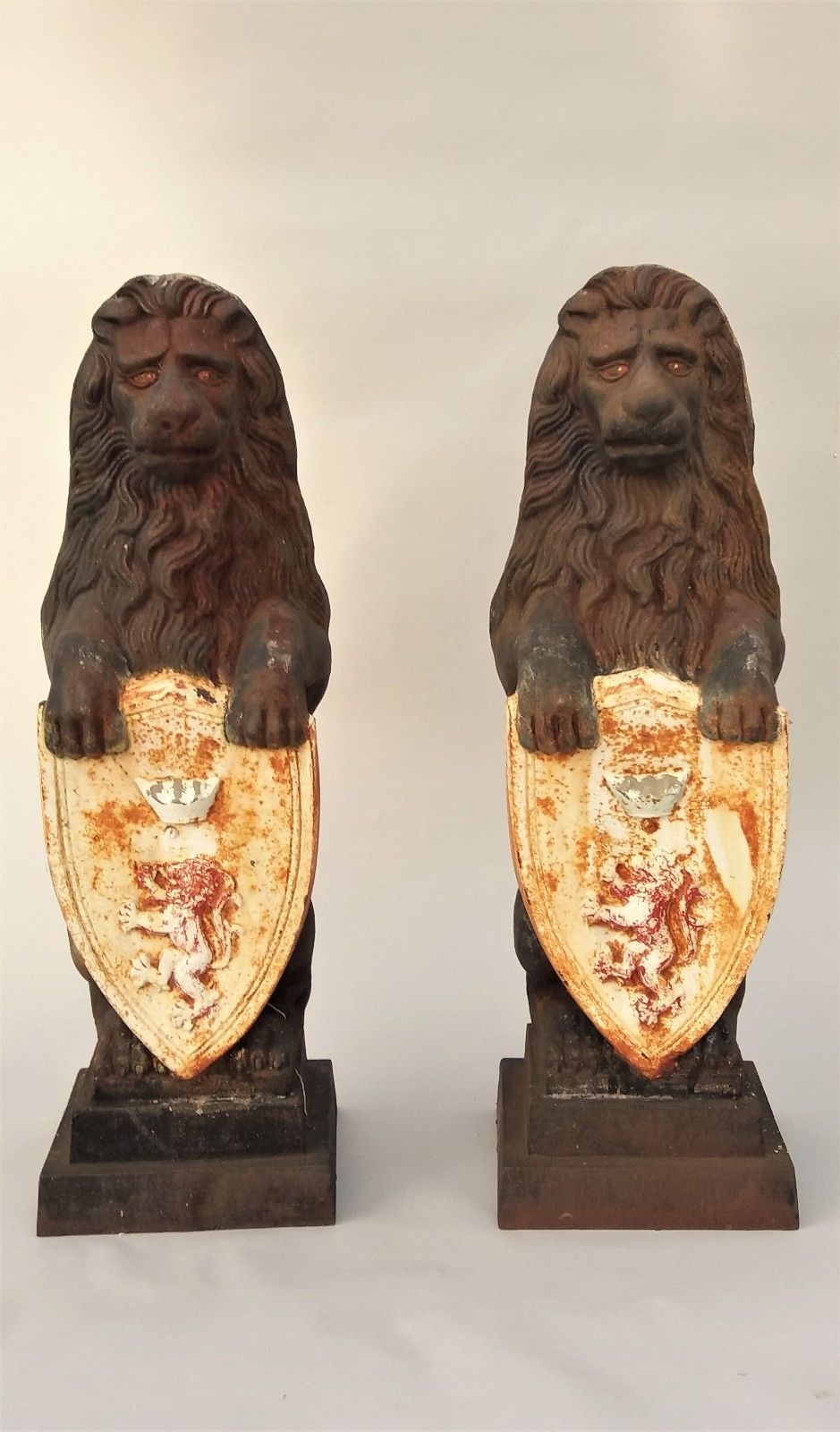 Good Pair of Painted Cast Iron Lions Sejant (1 of 1)