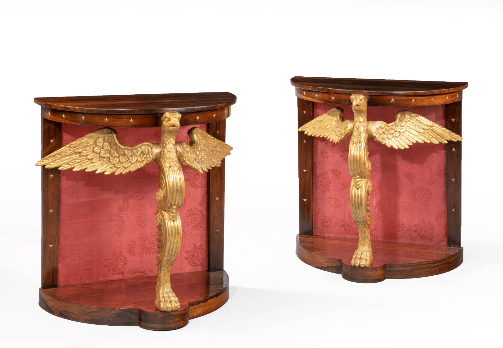 Good Pair of Regency Period Rosewood Demilune Pier Tables