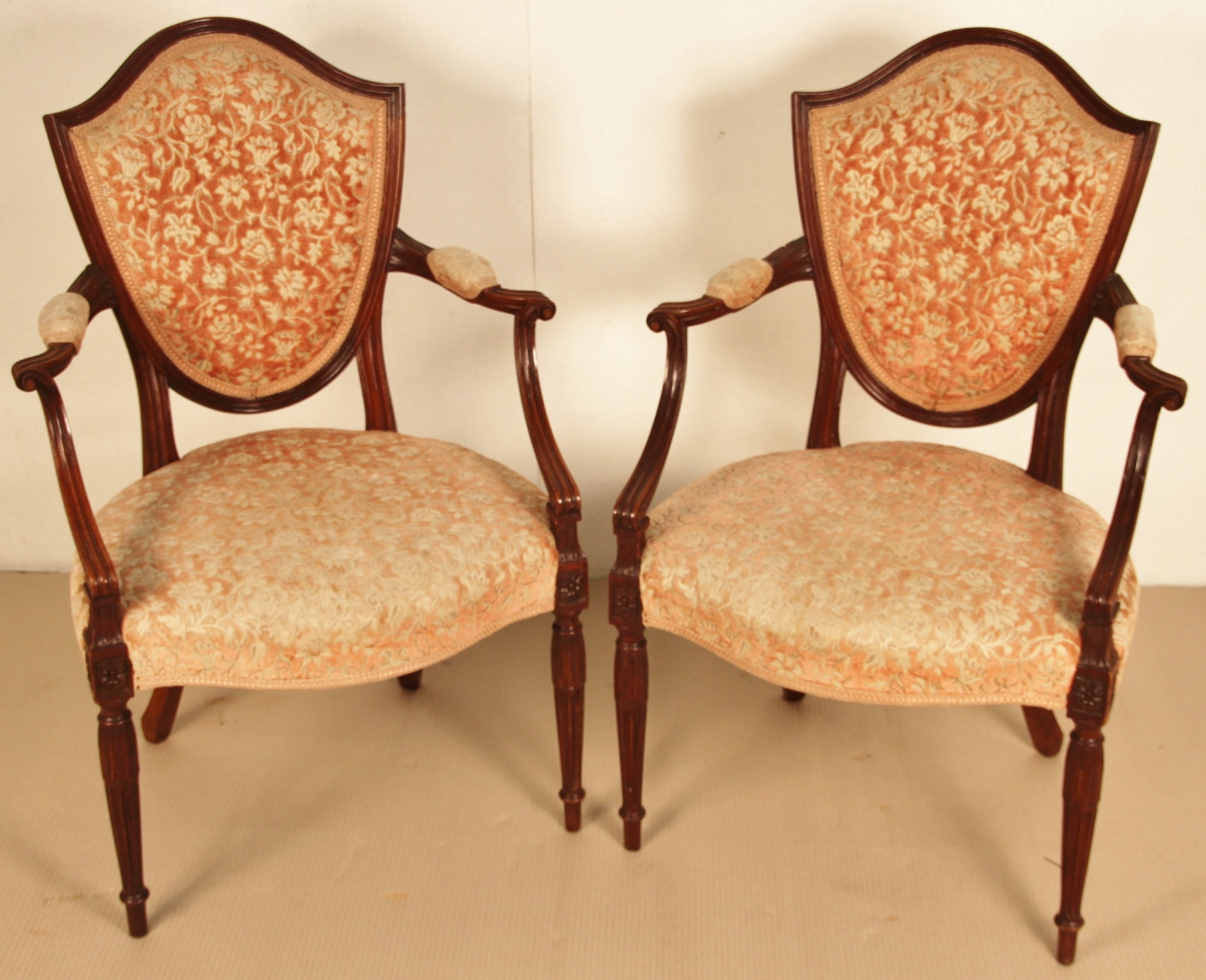 Good Pair of Shield Back Armchairs / Desk Chairs c.1901