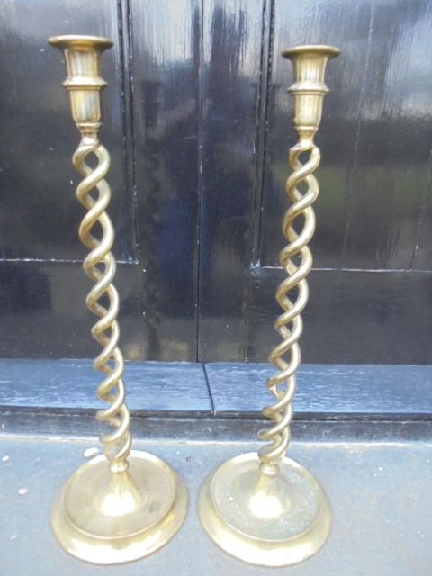 Good Pair of Tall Antique Brass Candlesticks c.1900