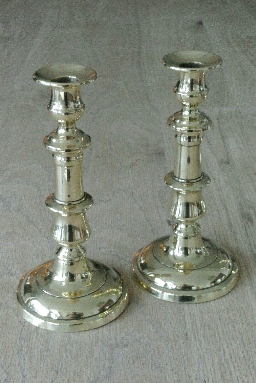 Good Pair of Victorian Brass Candlesticks c.1860 Round Base 8.5" - Polished