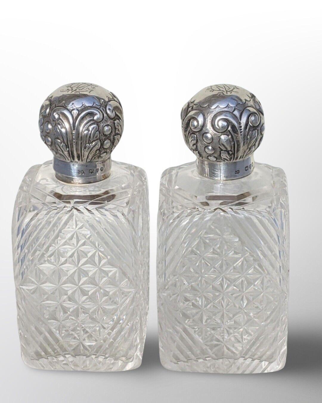 Good Pair of Victorian Silver & Cut Glass Scent Bottles John Newton Mappin 1893