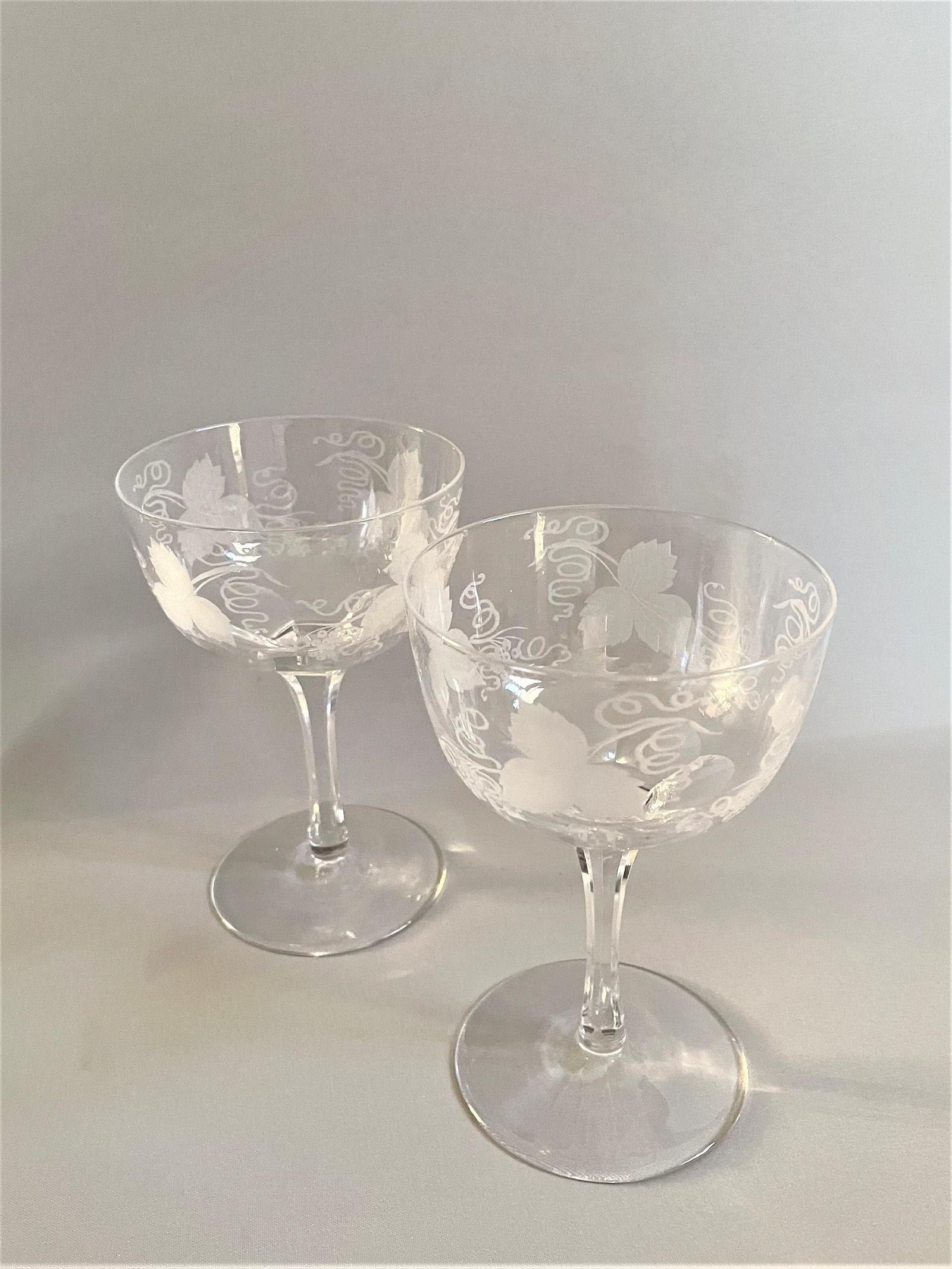 Good Pair of Victorian Vine Etched Champagne Bowls (1 of 5)