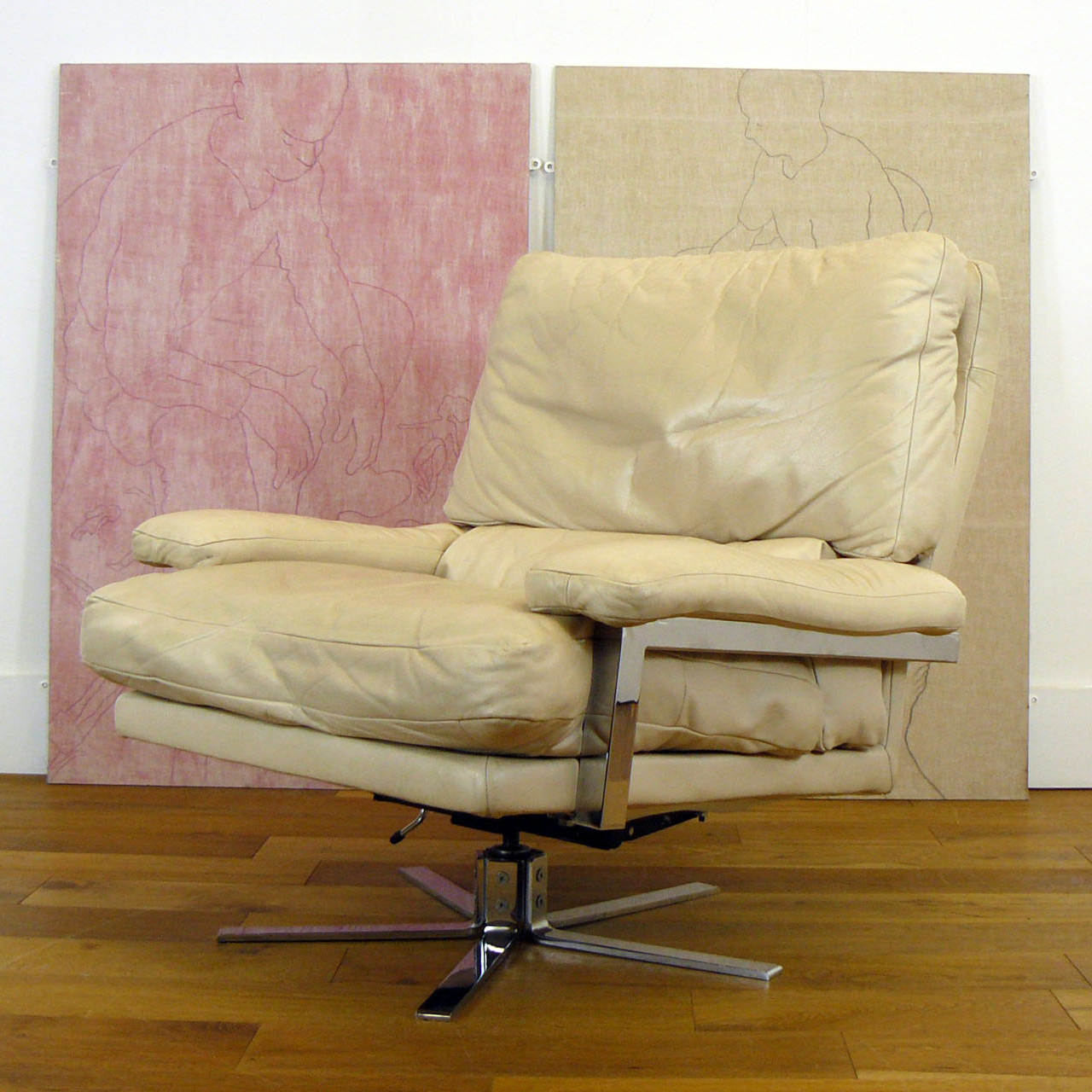 Good Pieff Mandarin Cream Leather and Chrome Swivel Armchair