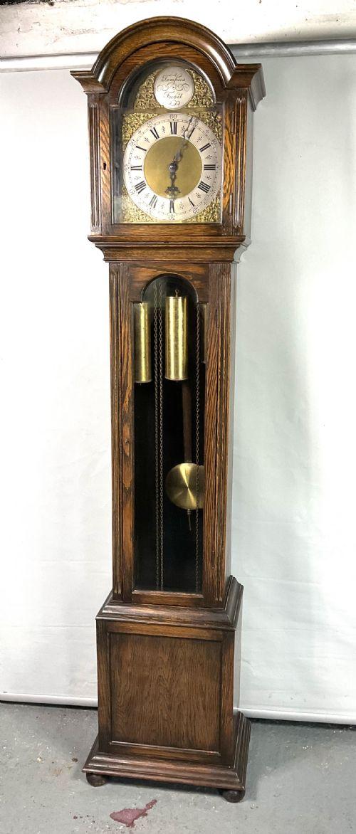Good Quality 1920’s Westminster Chiming Mellow Tune Musical Grandmother / Grandfather Weight Driven Oak Longcase Clock