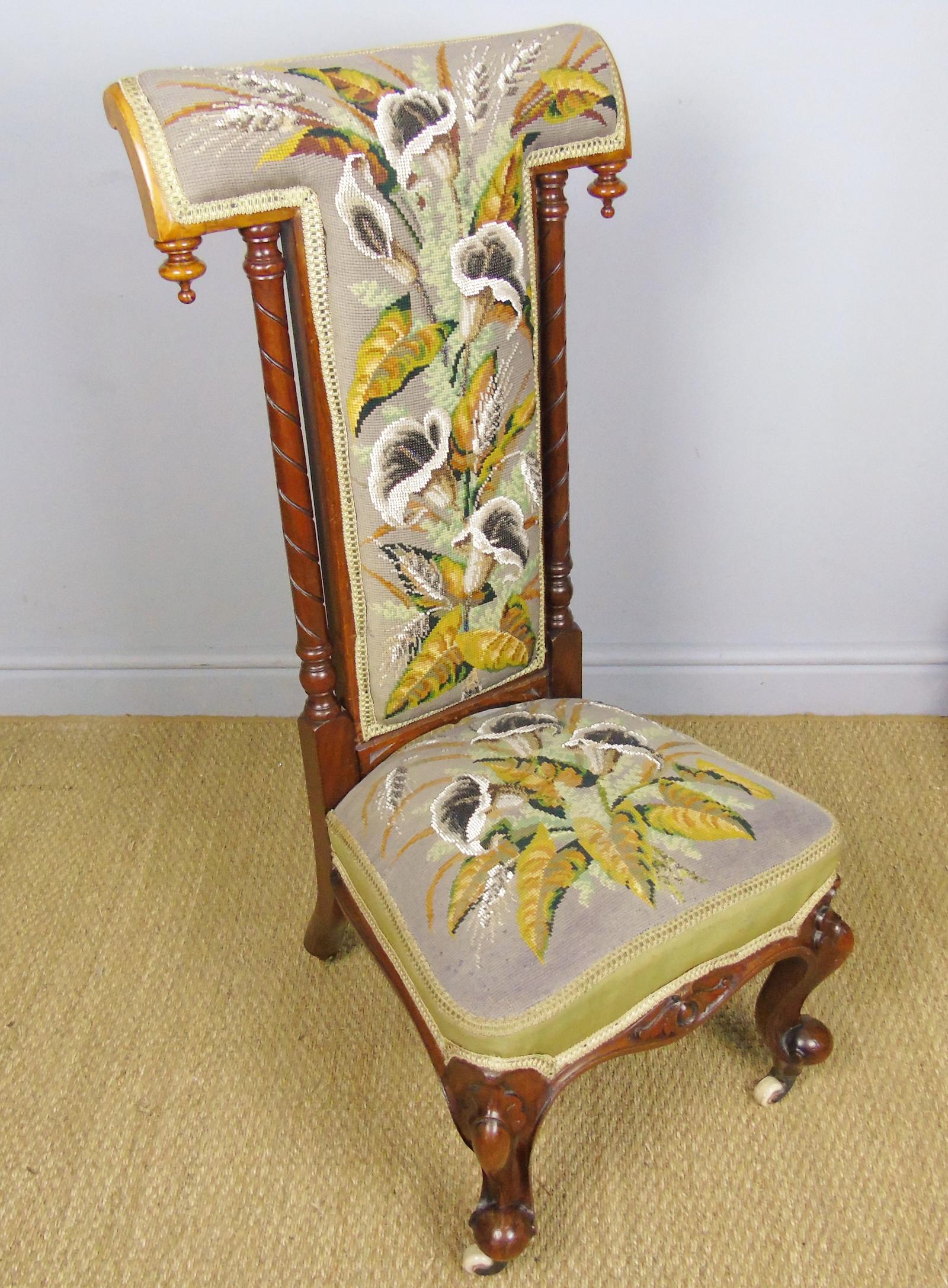 Good Quality Beadwork Walnut Prie Dieu Chair
