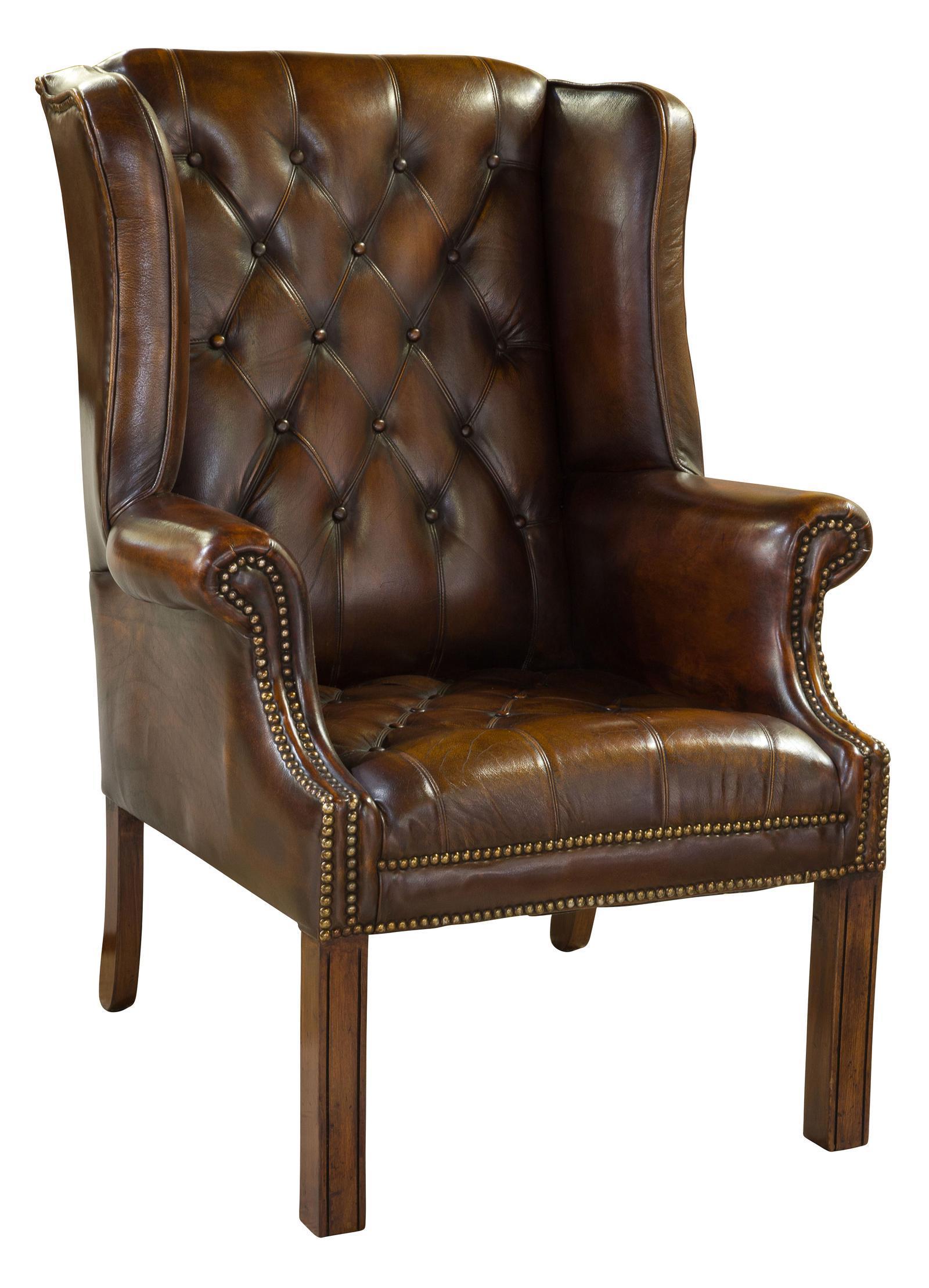 Good Quality Brown Leather Wing Chair