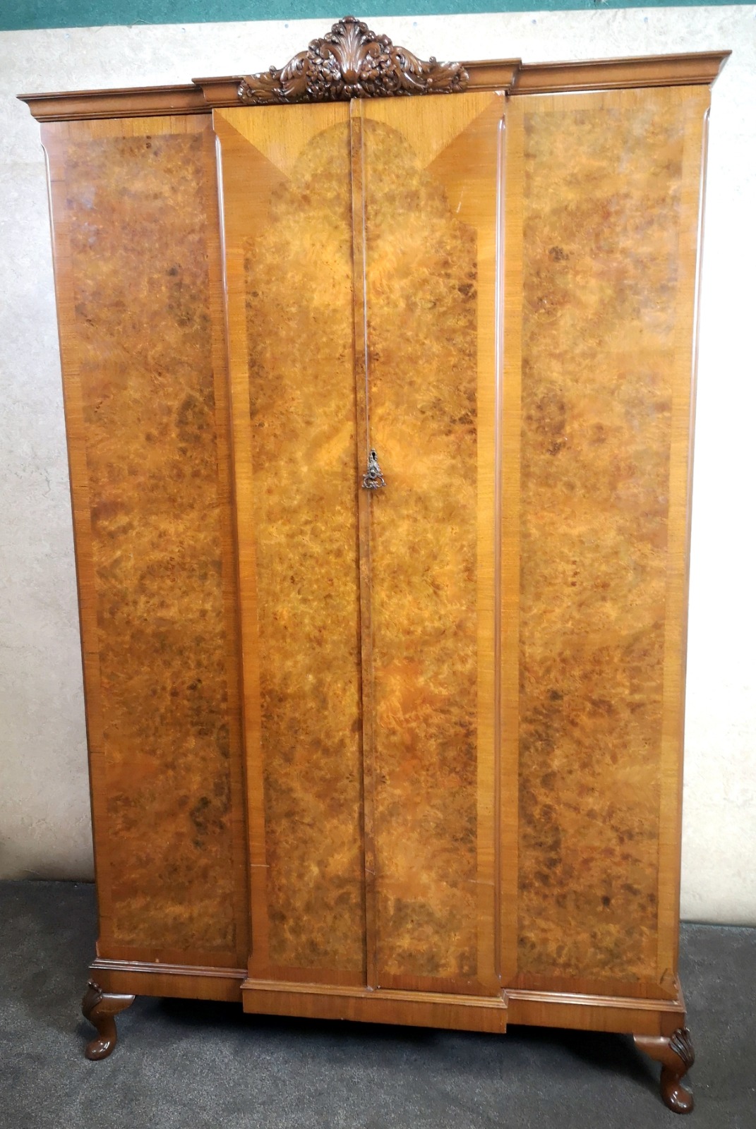 Good Quality Burr Walnut Breakfront Wardrobe c.1920