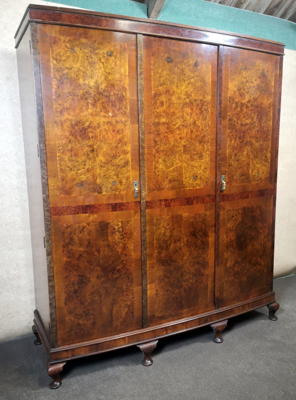 Good Quality Burr Walnut Triple Door Wardrobe c.1920 (1 of 1)