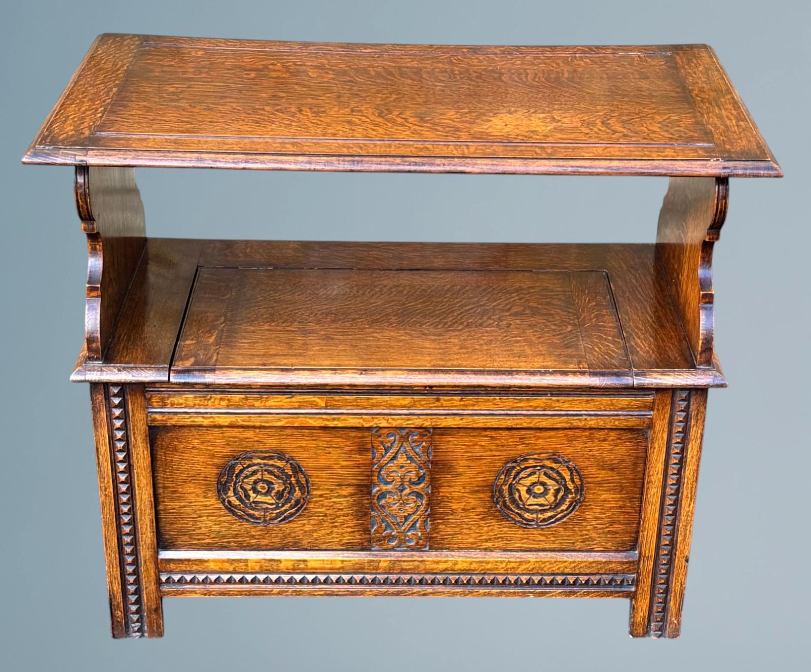 Good Quality Carved Oak Monks Bench - Hall Seat (1 of 19)
