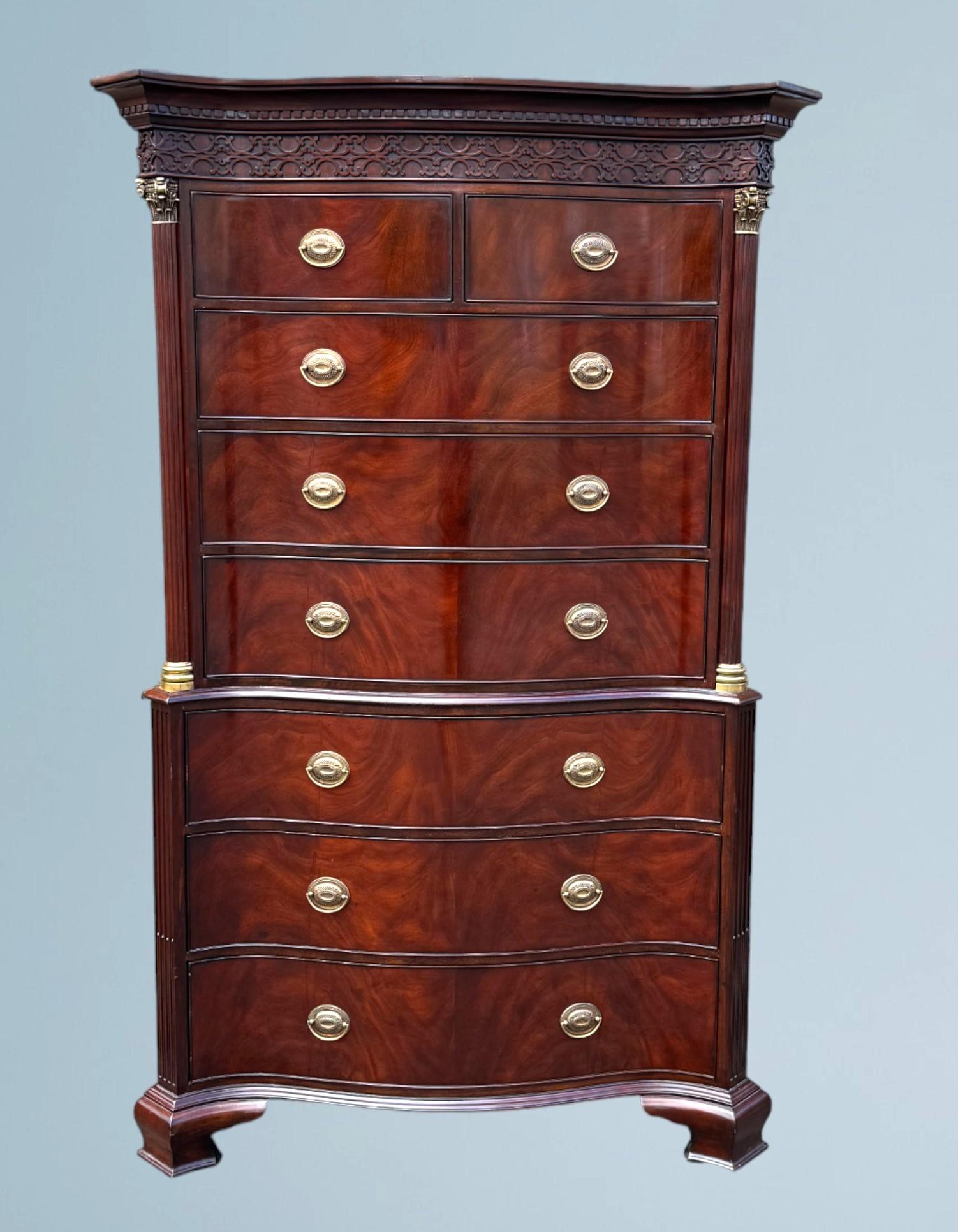 Good Quality Mahogany Serpentine Chest on Chest / Mahogany Tallboy