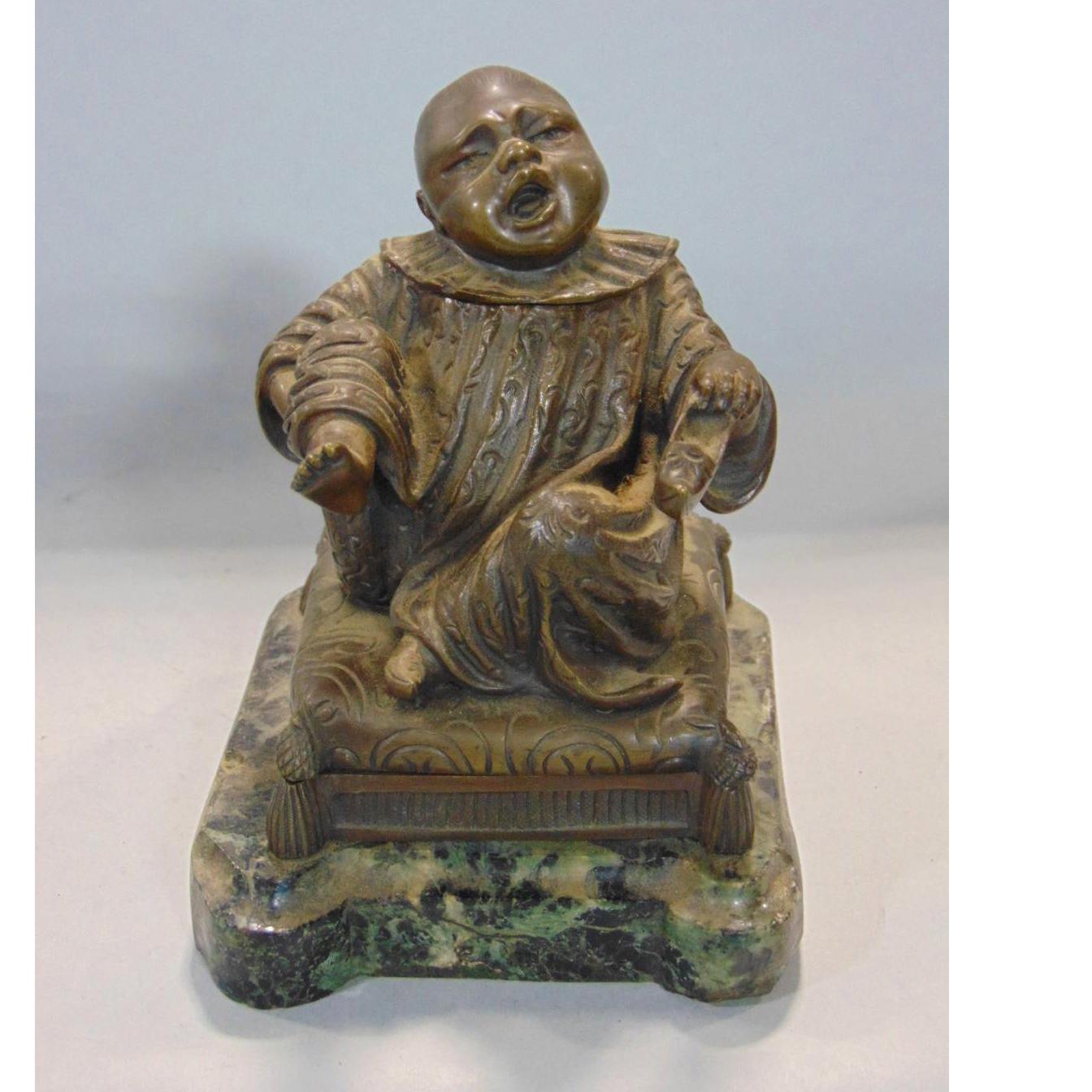 Good Quality Novelty Bronze Chinese Boy Inkstand / Striker 19th Century
