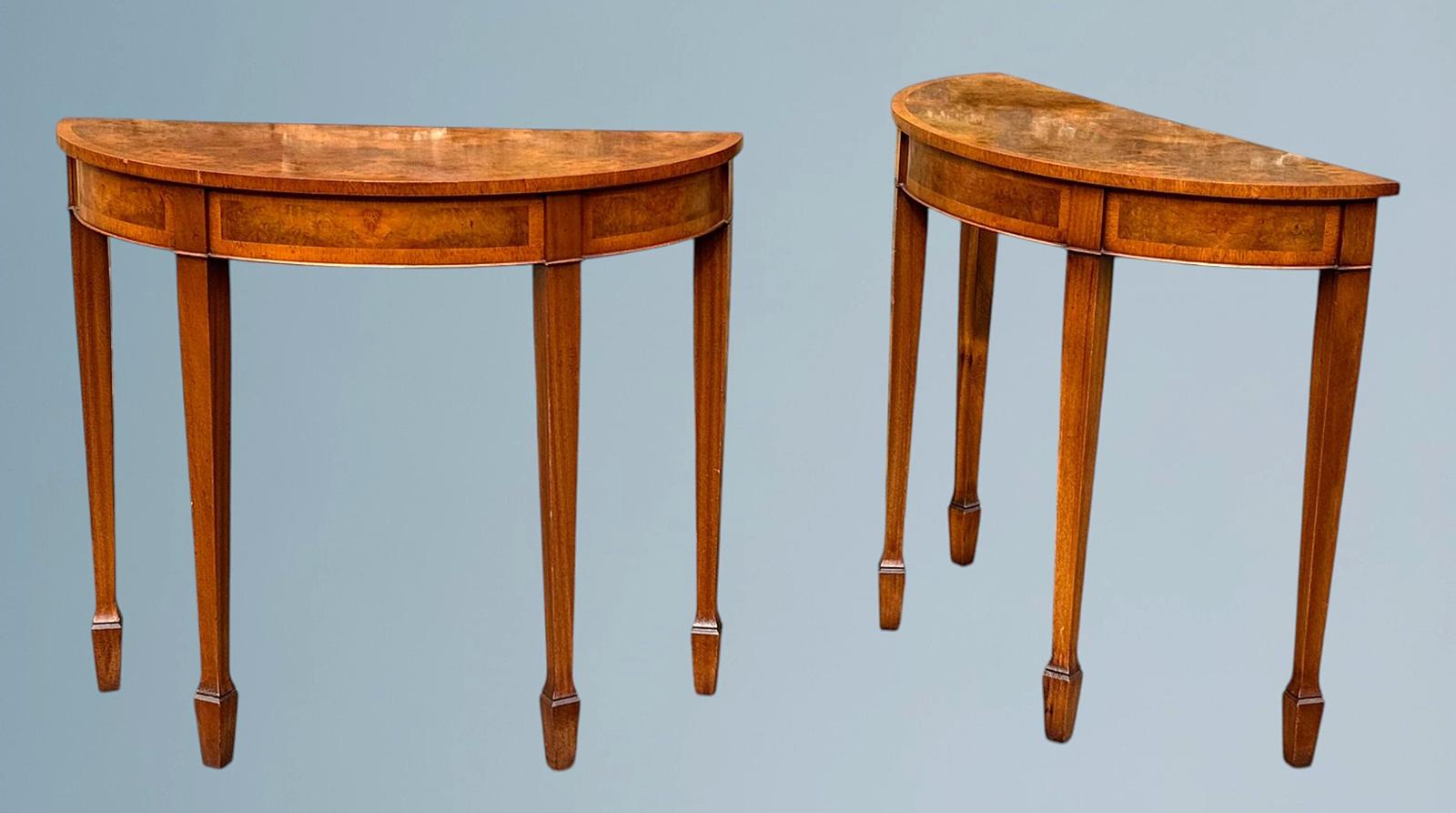 Good Quality Pair of Figured Walnut Side Tables / Console Tables / Hall Tables