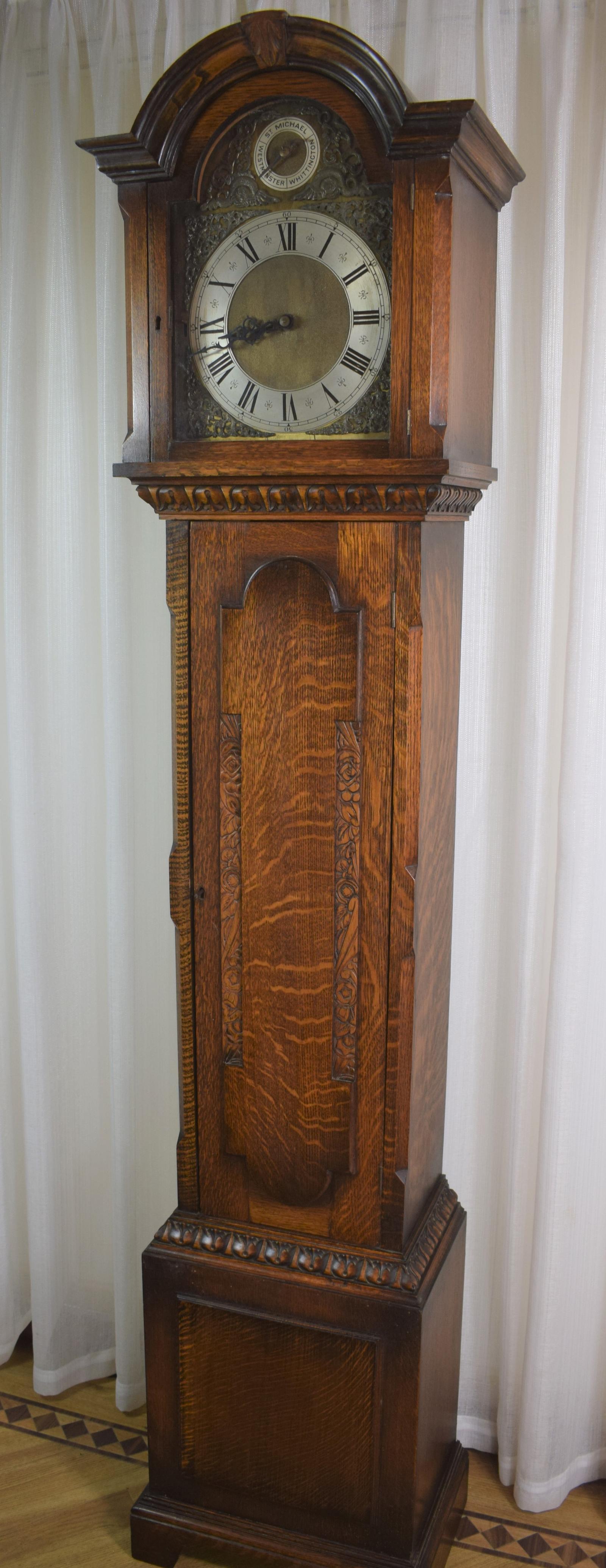 Good Quality Quarter Chiming Triple Musical Tune Triple Weight German 8 Day Movement in A Very Attractive English Grandfather or Grandmother Oak Longcase Clock