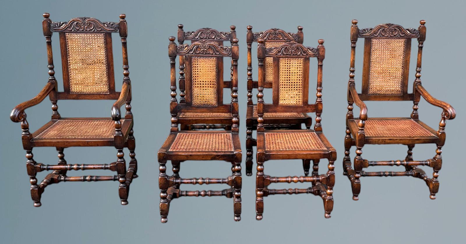 Good Quality Set of Six Oak Jacobean Style Dining Chairs