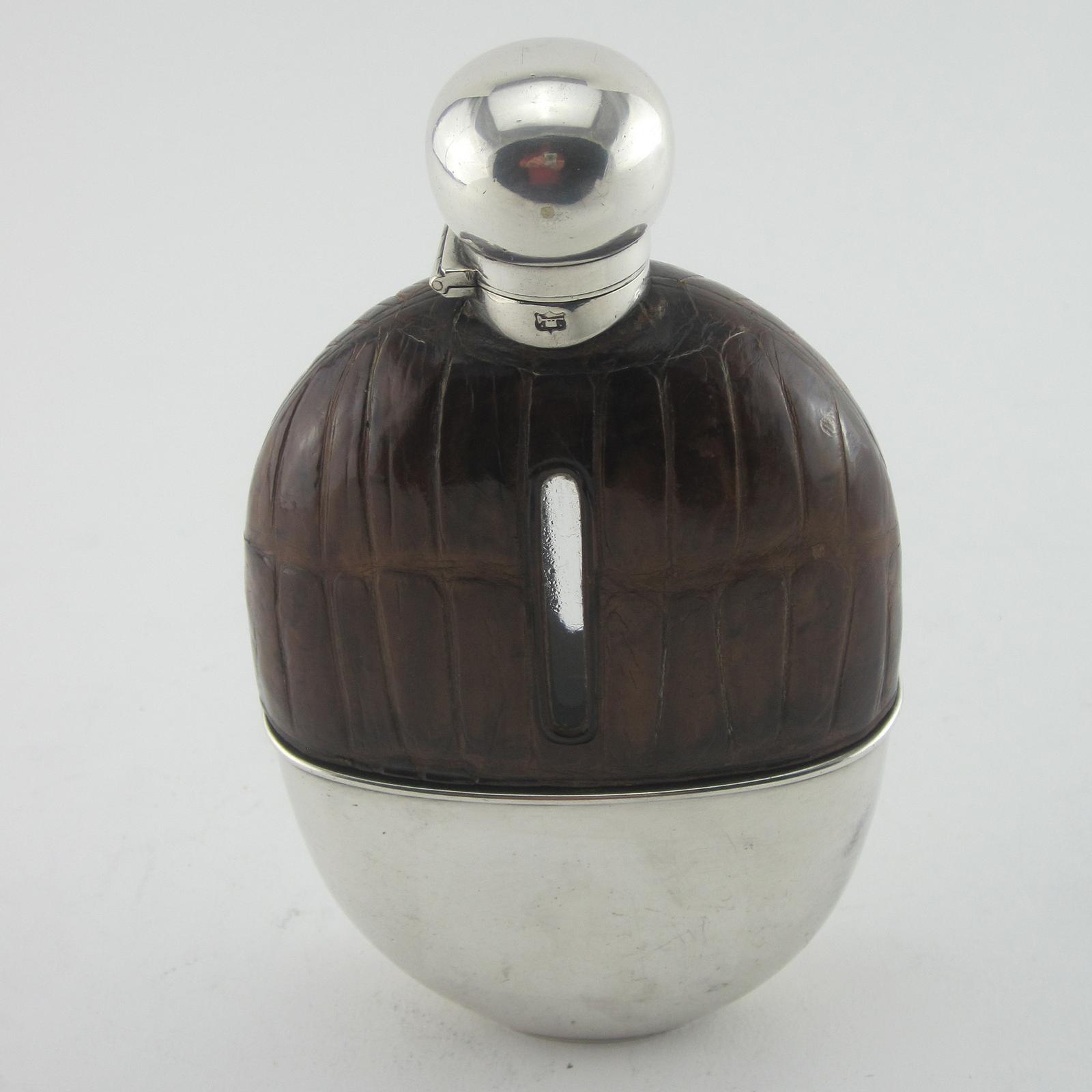 Good Quality Silver Plated Crocodile Leather Bound Hip Flask