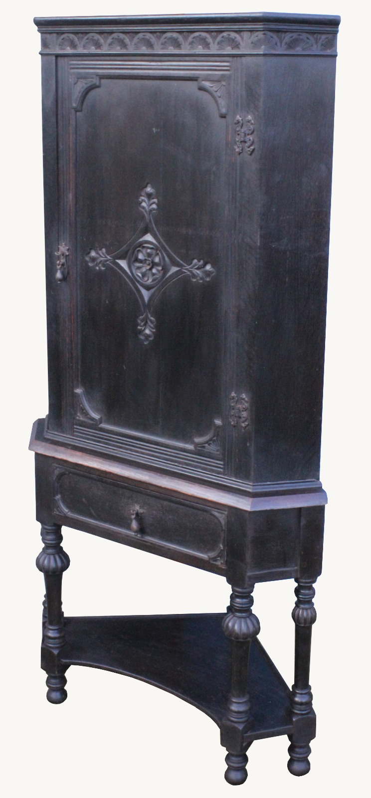 Good Quality Victorian Oak Corner Cabinet on Stand