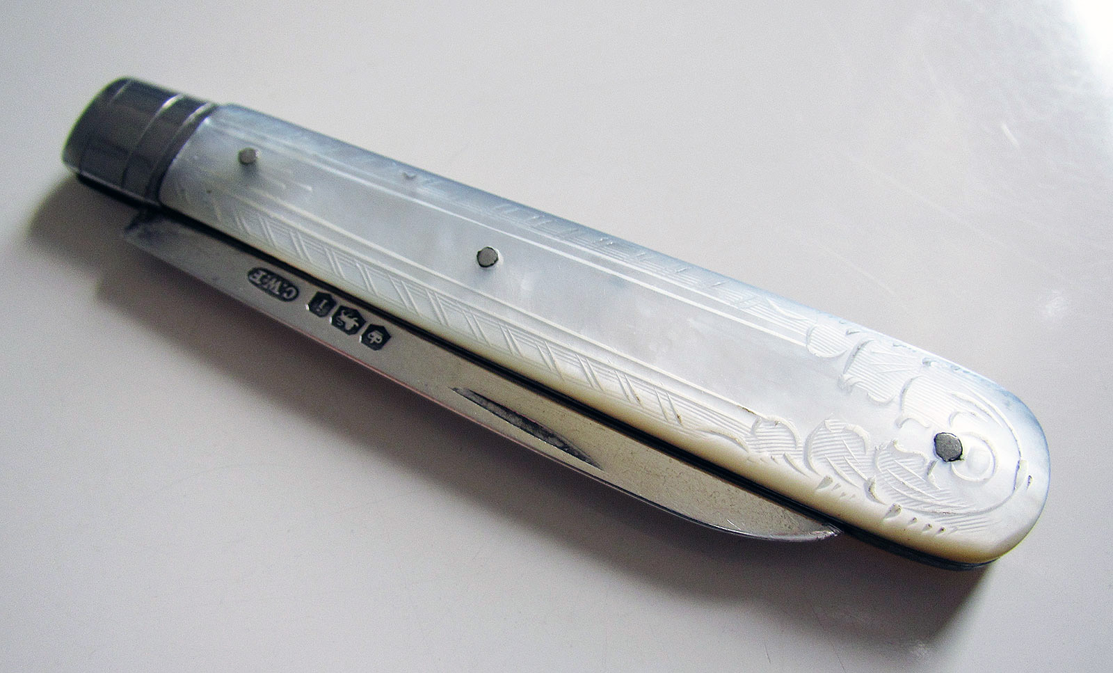 Good Quality Vintage Solid Sterling Silver & Mother of Pearl Mop English Sheffield Hallmarked Folding Pocket Fruit Penknife 1926