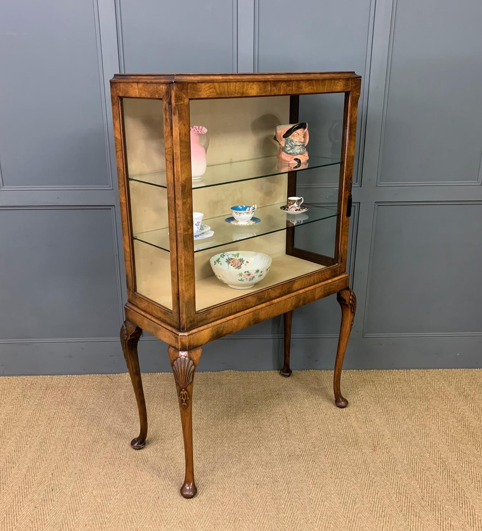 Good Queen Anne Style Burr Walnut Display Cabinet c.1930