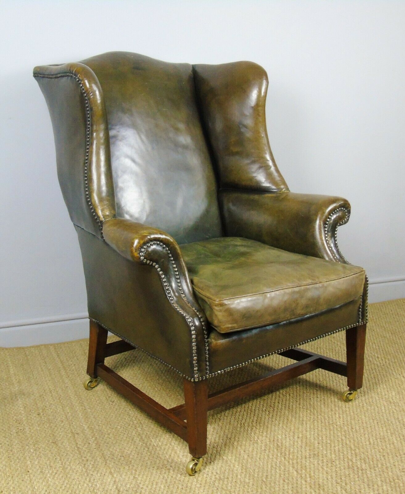 Good Regency Style Antique Leather Wing Back Armchair (1 of 8)
