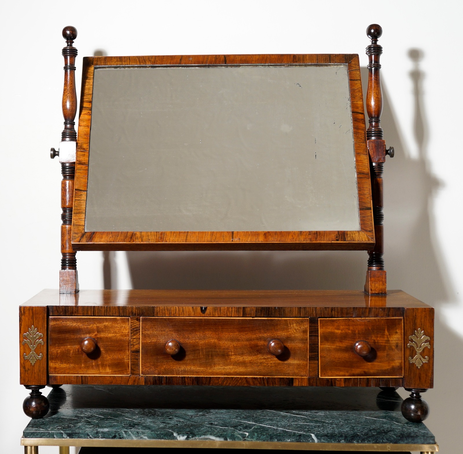 Good Regency Three-Drawer Oak Lined Mahogany & Rosewood with Boxwood Toilet Mirror