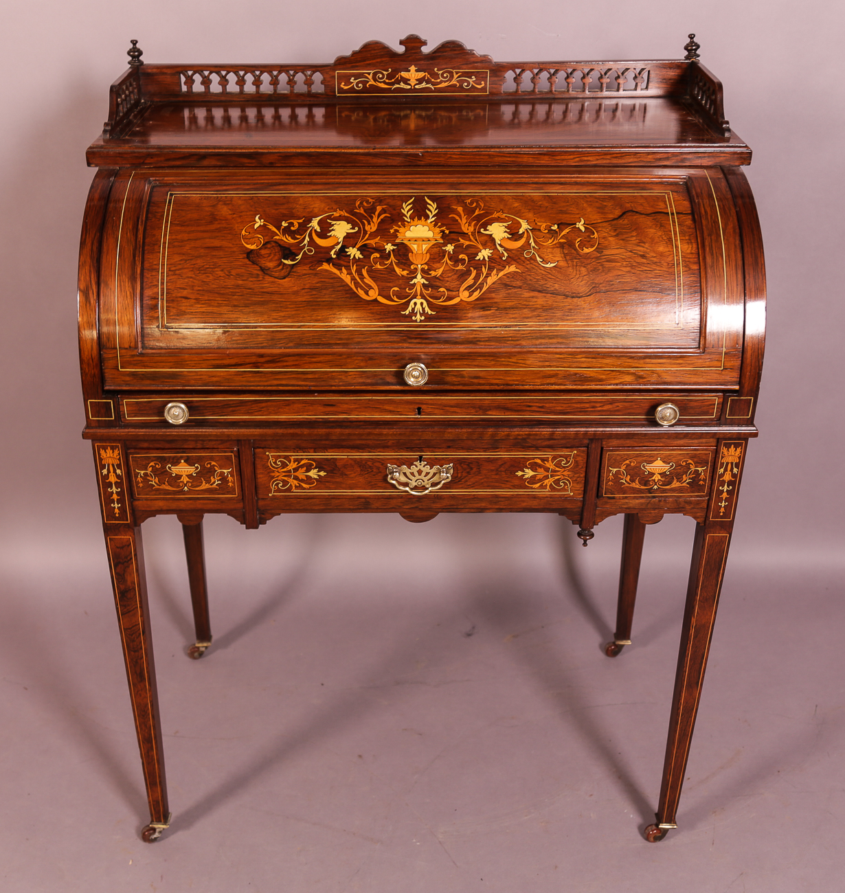 Good Rosewood with Inlay Cylinder Ladies Desk c.1890