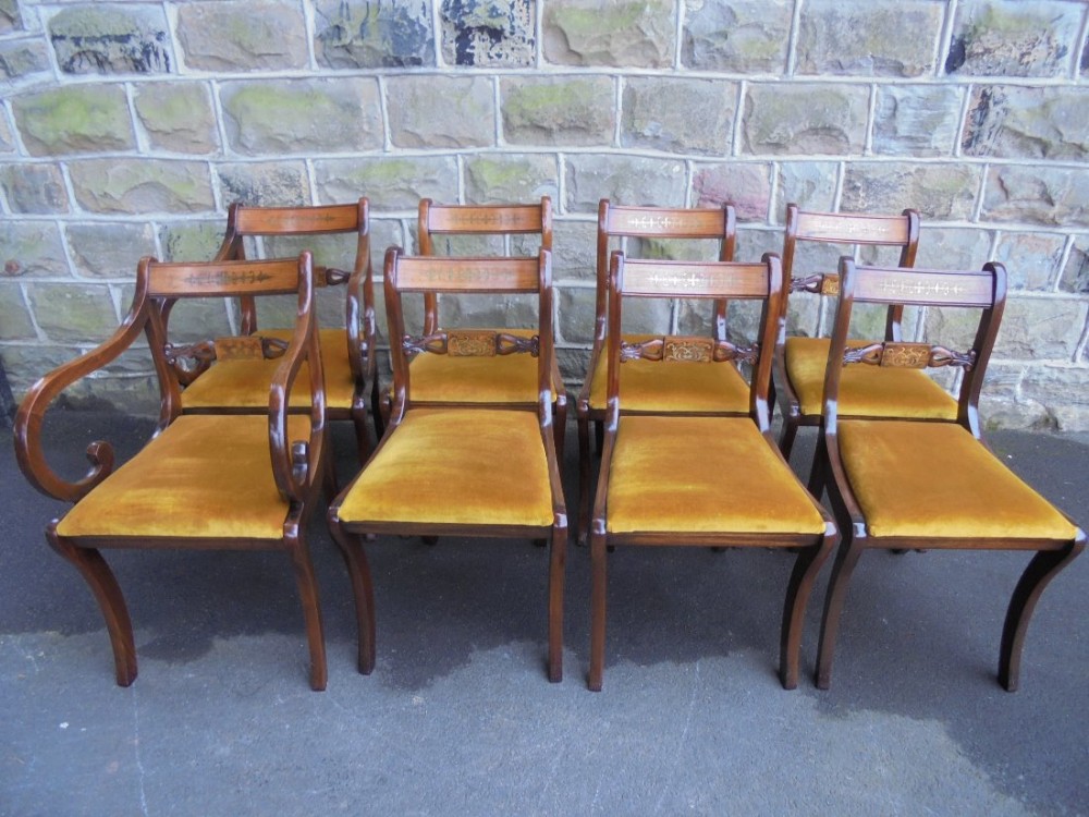 Good Set 8 Inlaid Mahogany Regency Style Dining Chairs