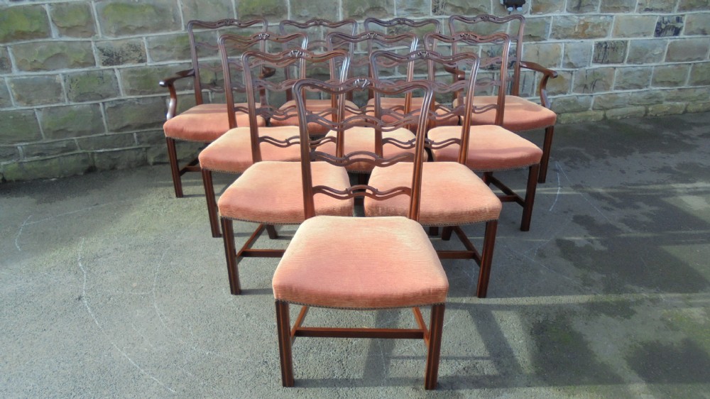 Good Set of 10 Mahogany Ladder Back Dining Chairs