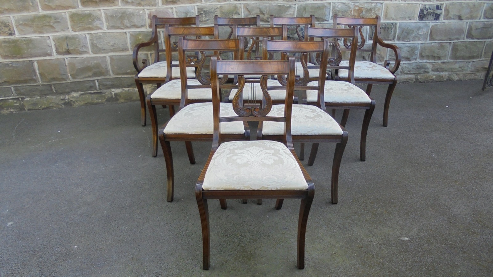 Good Set of 10 Mahogany Lyre Back Dining Chairs