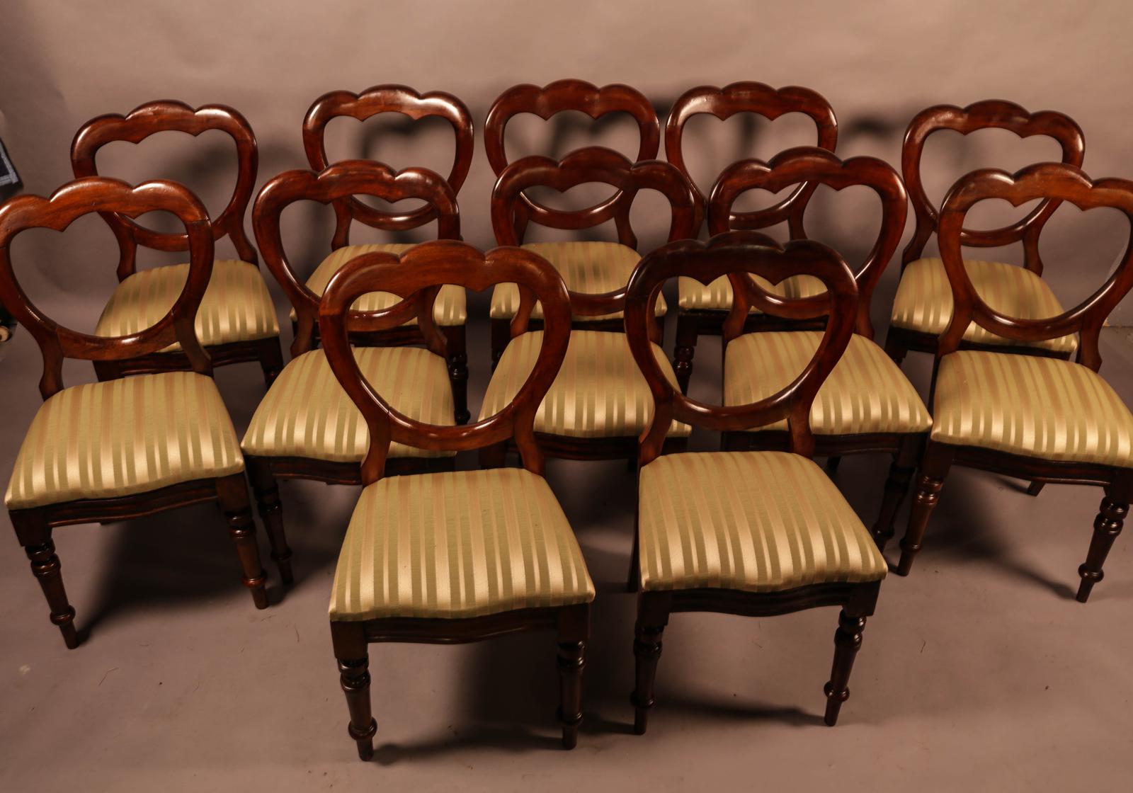 Good Set of 12 Victorian Mahogany Balloon Back Dining Chairs