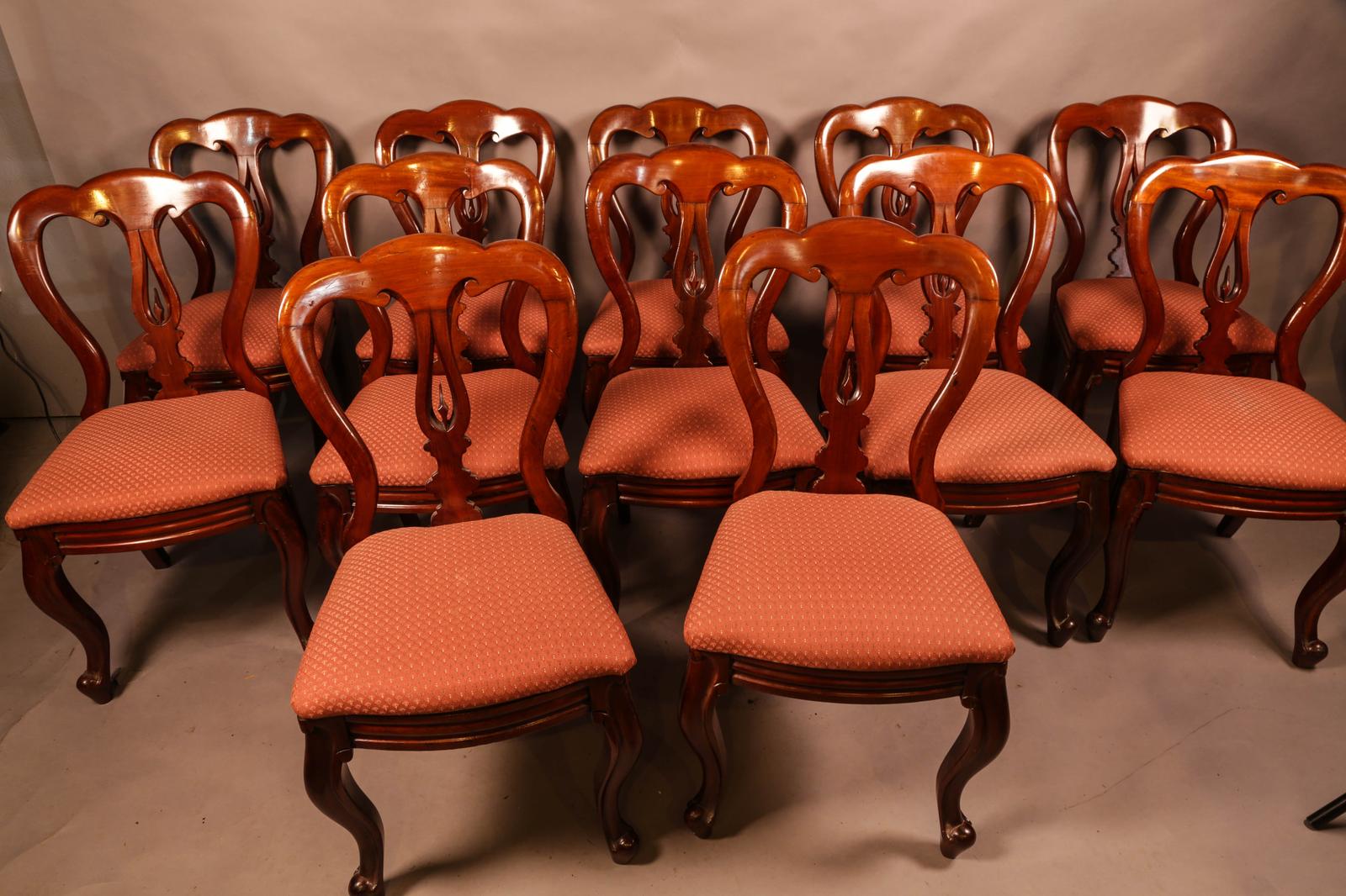 Good Set of 12 Victorian Mahogany Spear Point Balloon Back Dining Chairs