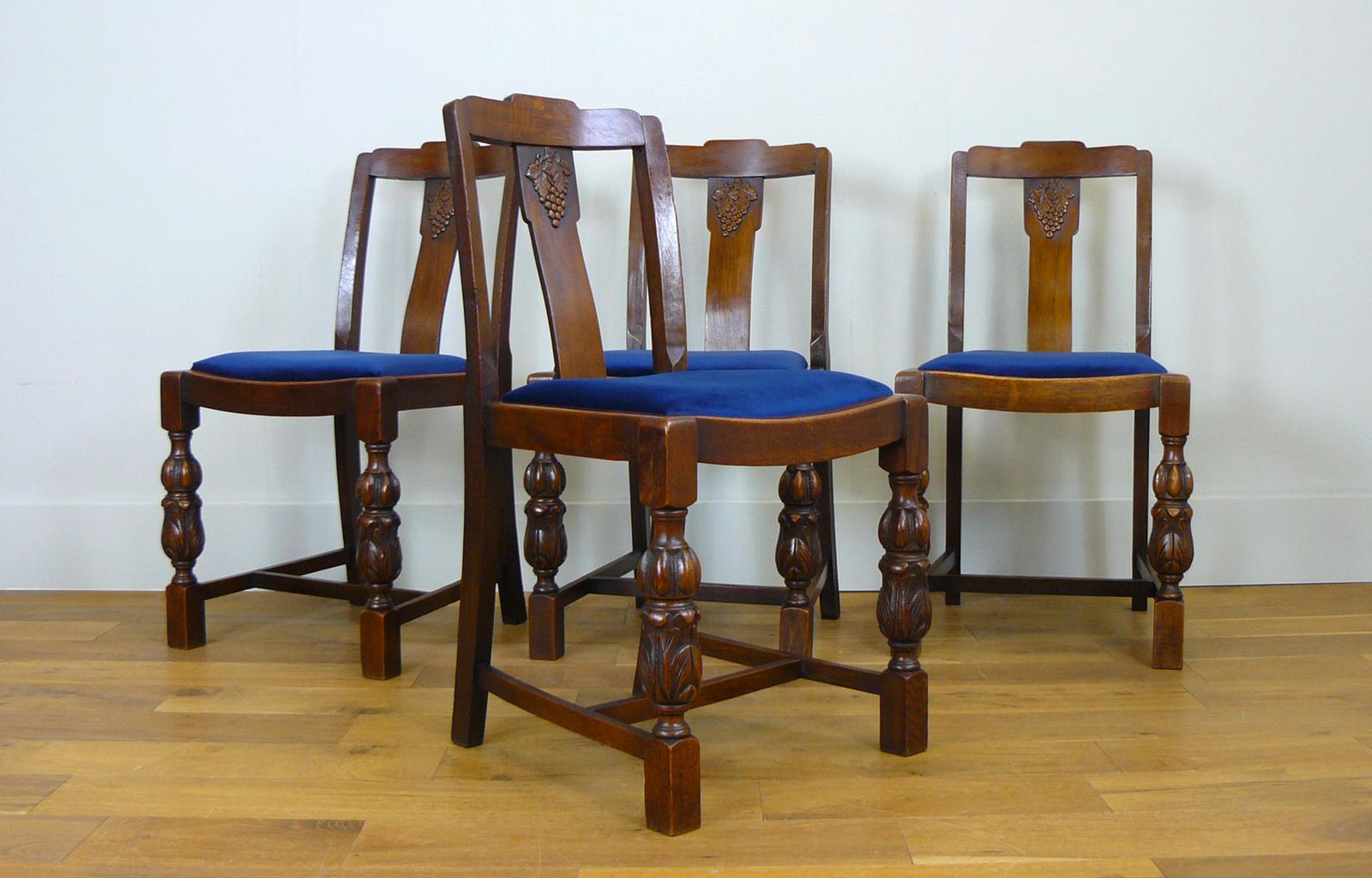 Good Set of 4 1930s British Oak Dining Chairs Newly Upholstered (1 of 12)