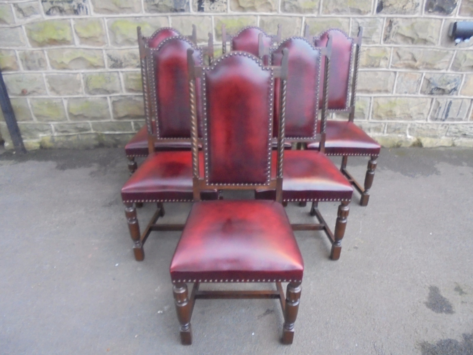 Good Set of 6 Oak & Leather Dining Chairs c.1920