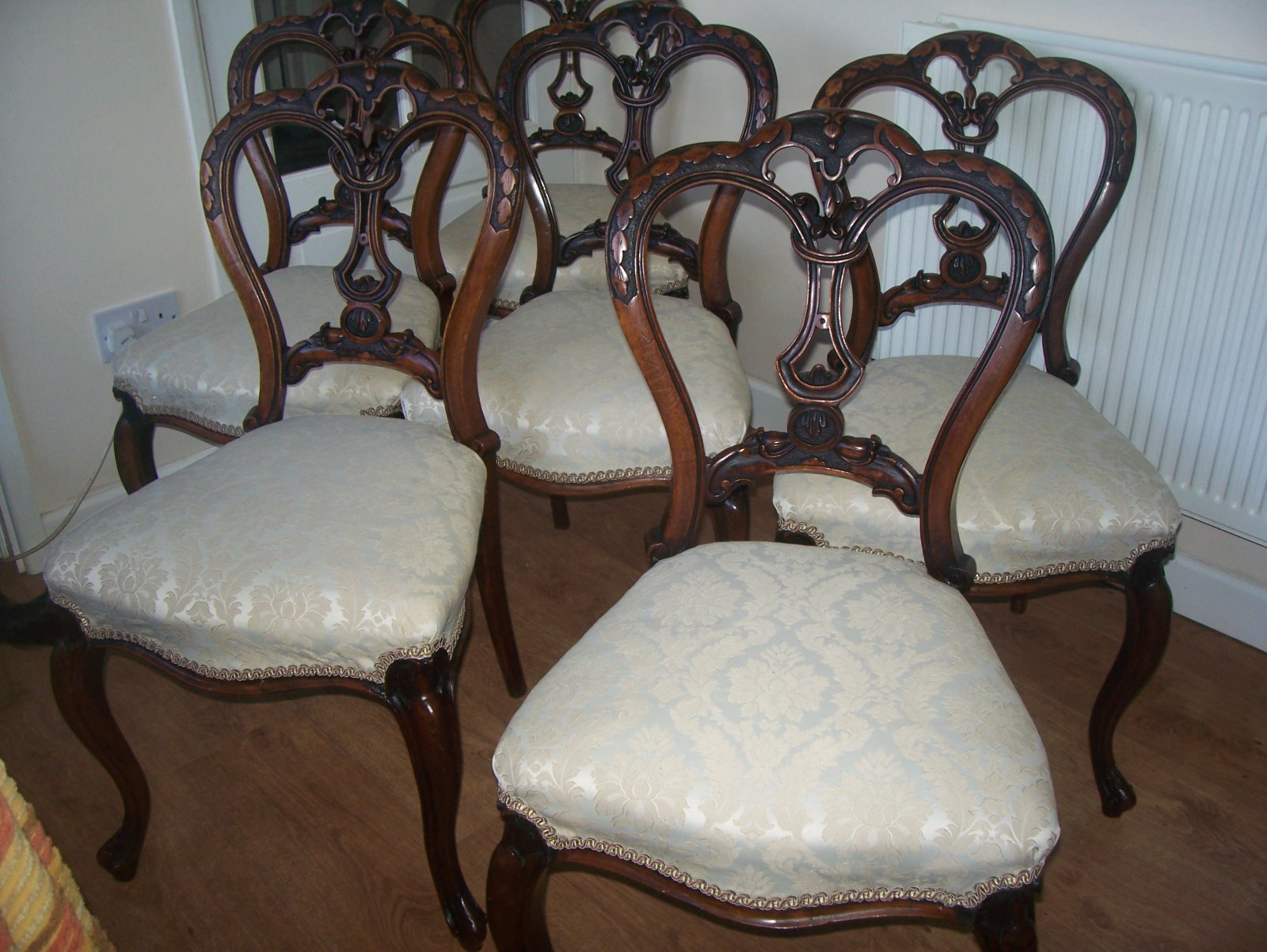 Good Set of 6 Walnut Upholstered Dining Chairs (1 of 1)