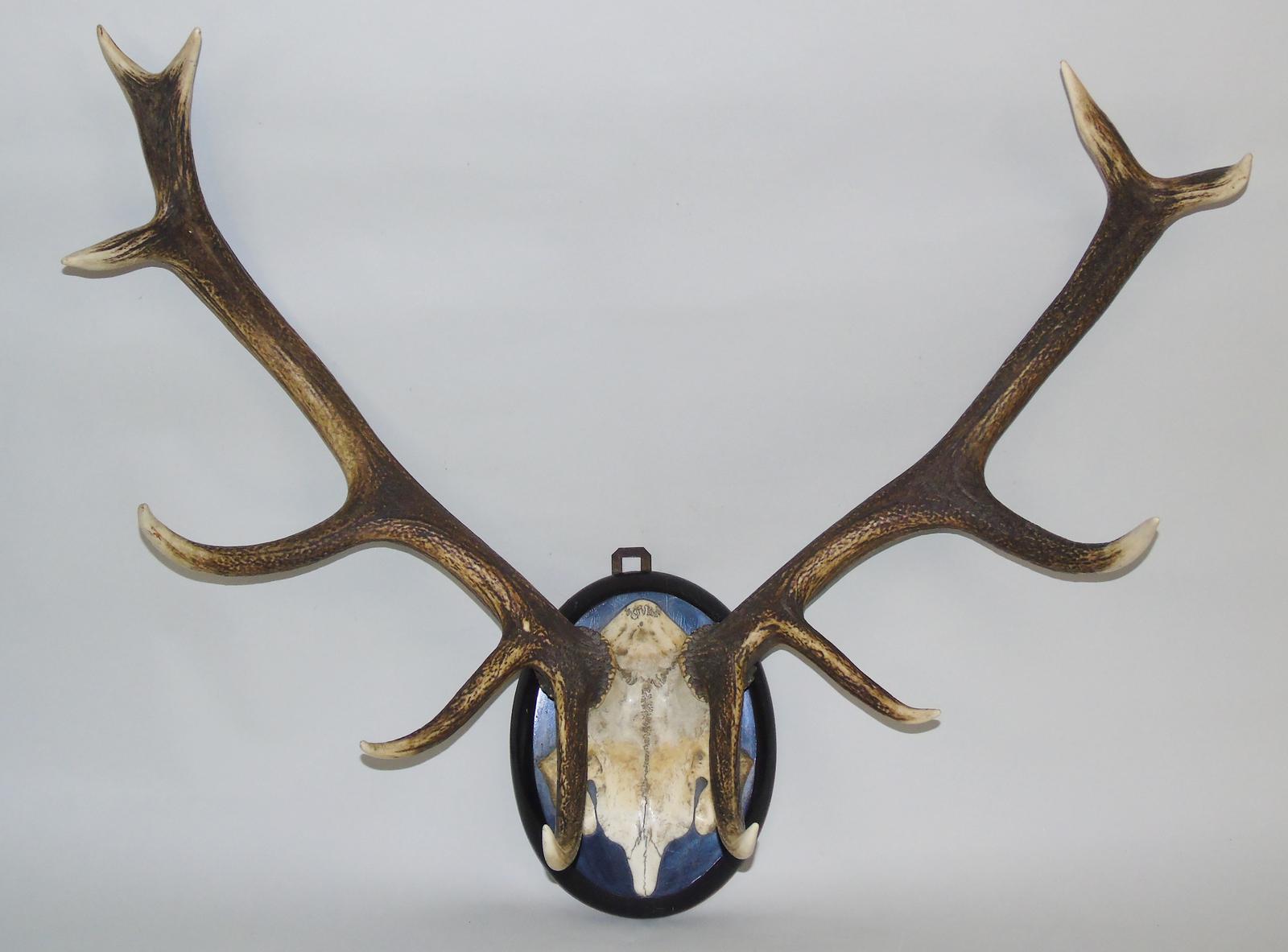 Good Set of Antique Antlers on Ebonised Shield Hunting Trophy (1 of 5)