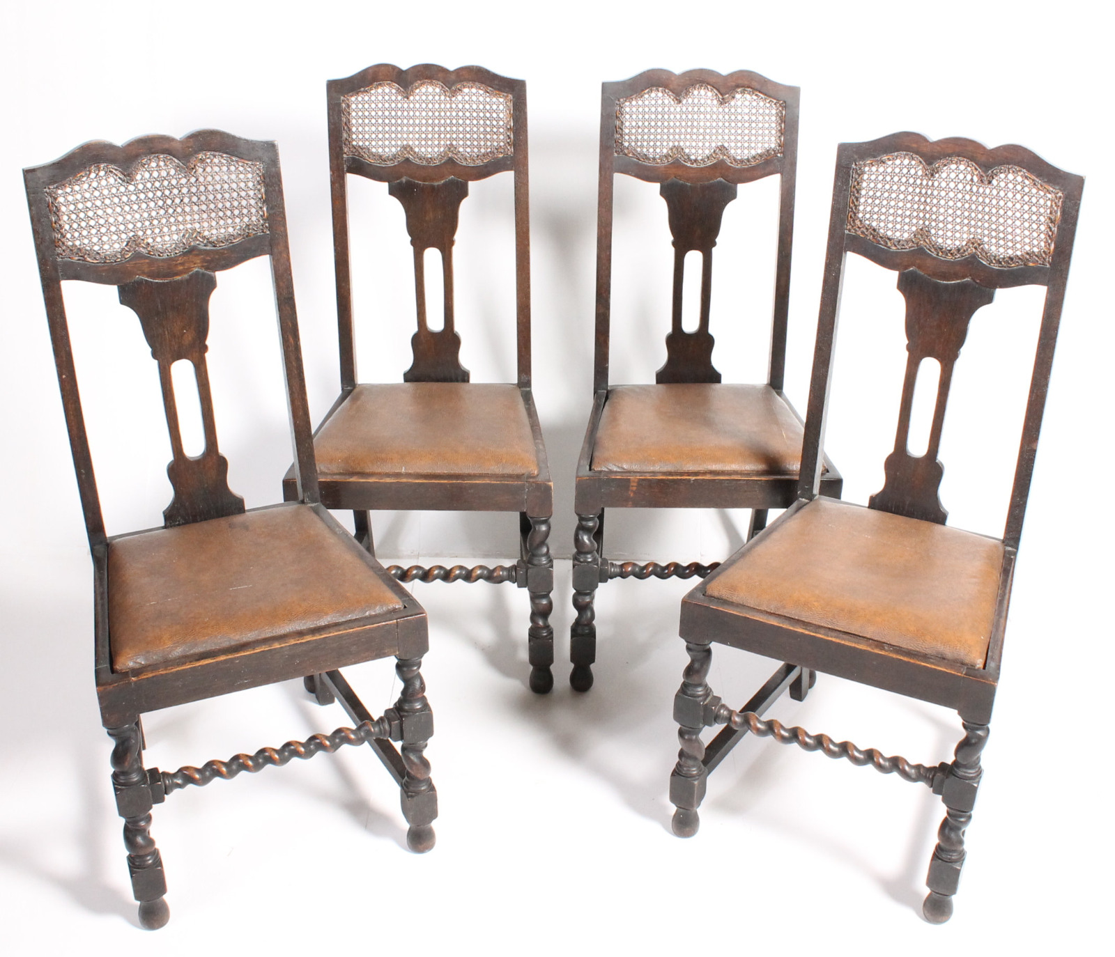 Good Set of Four Barley Twist Cane Bergere Oak Dining Chairs