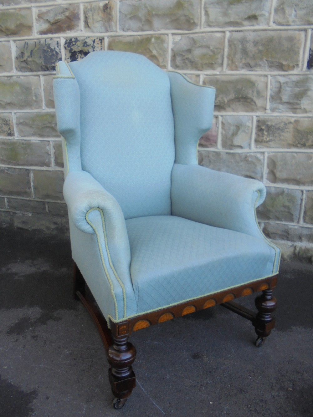 Good Shaped Antique English Upholstered Wing Armchair