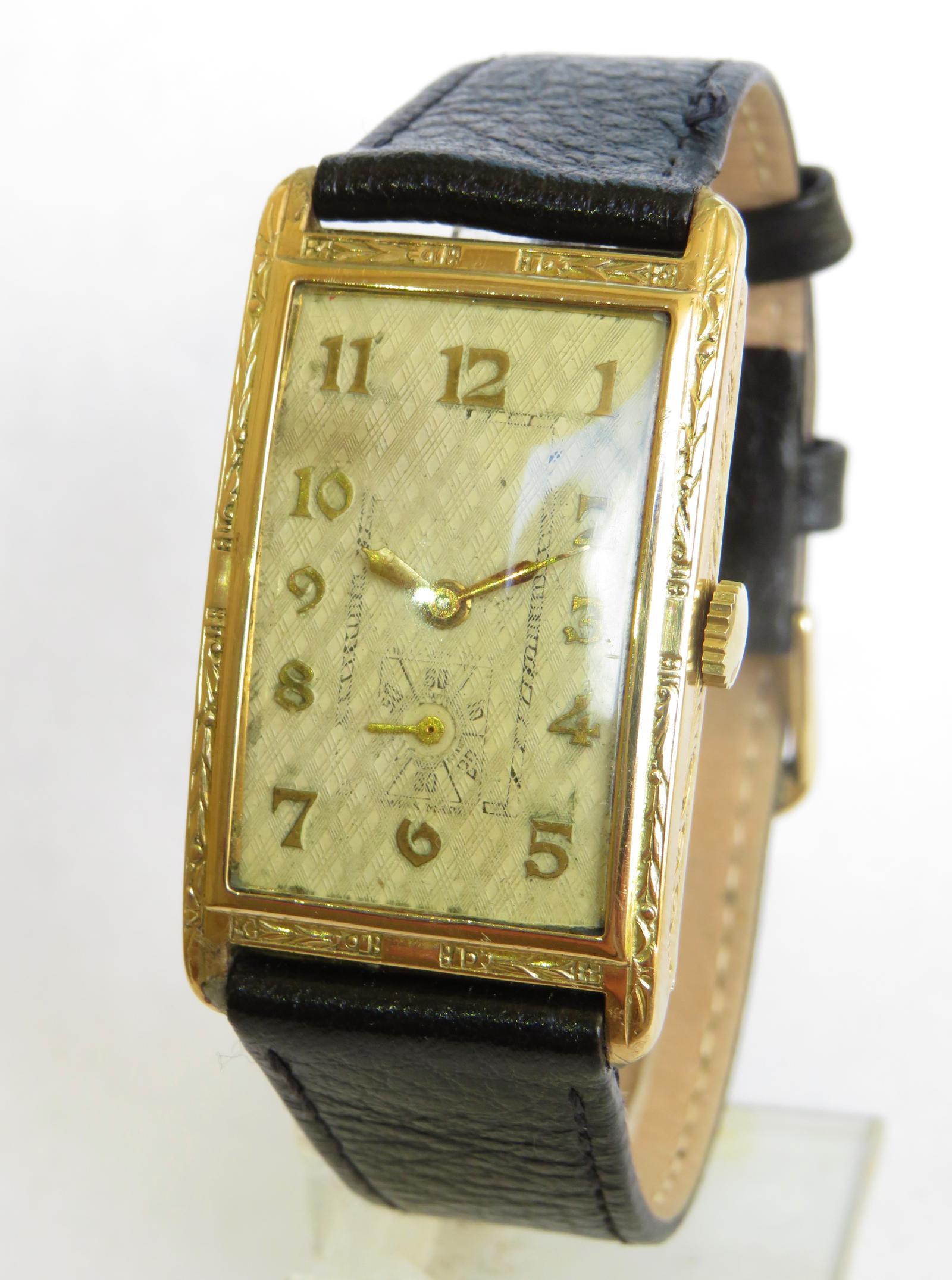 Good Sized Mens 9ct Gold Art Deco Wrist Watch