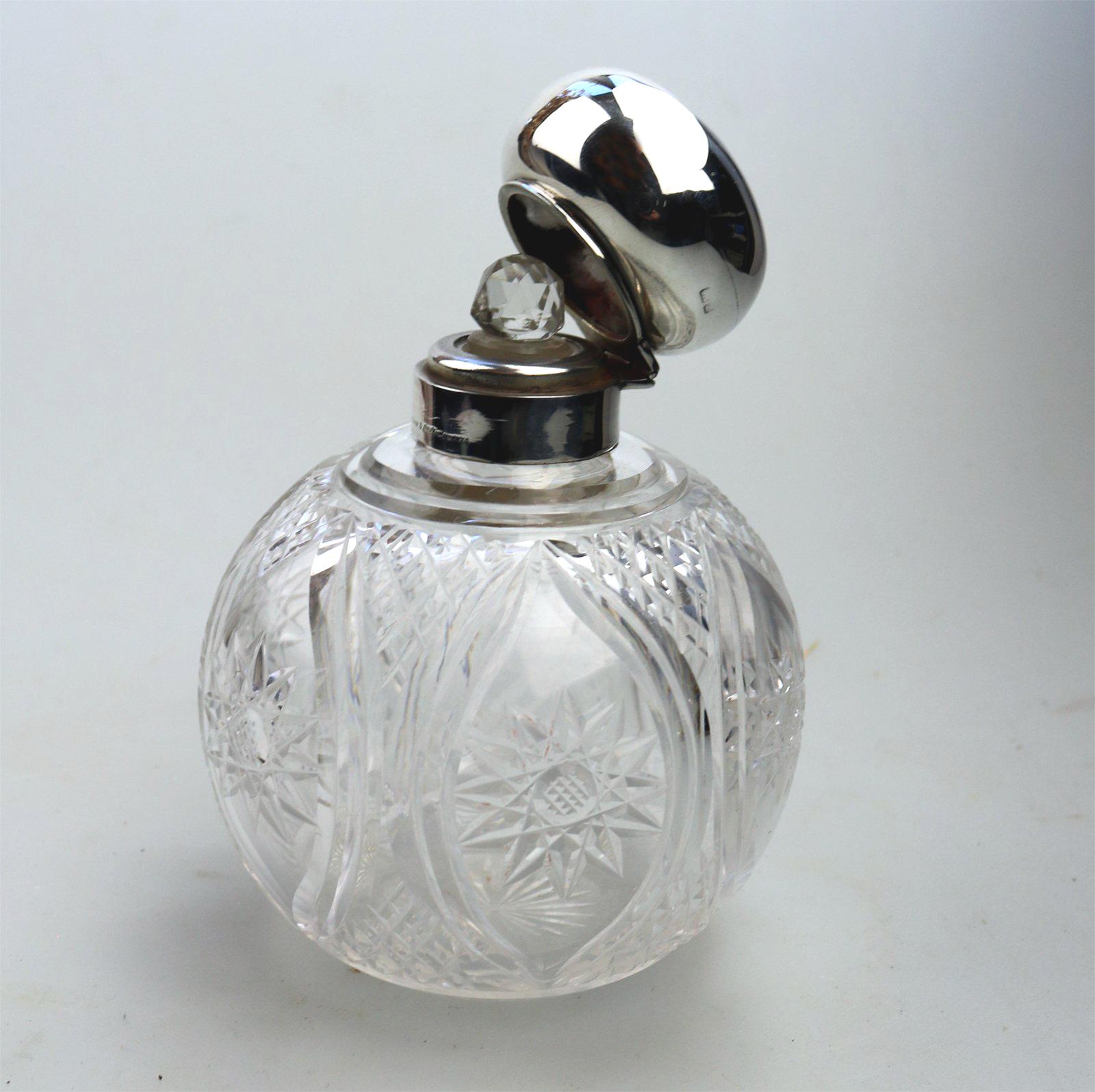 Good Solid Silver & Cut Glass Globular Scent Bottle Chester 1911