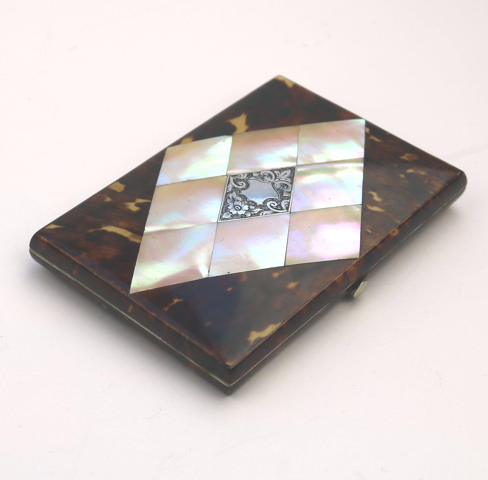 Good Tortoiseshell & Mop & Silver Visiting Card Case c.1880