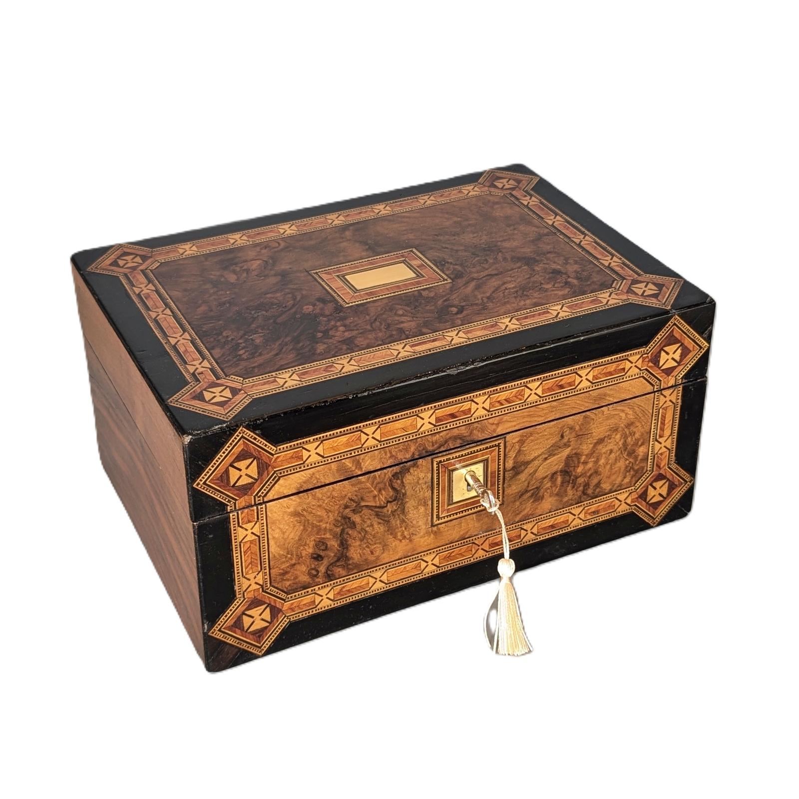 Good Victorian Burr Walnut & Inlaid Jewellery Box