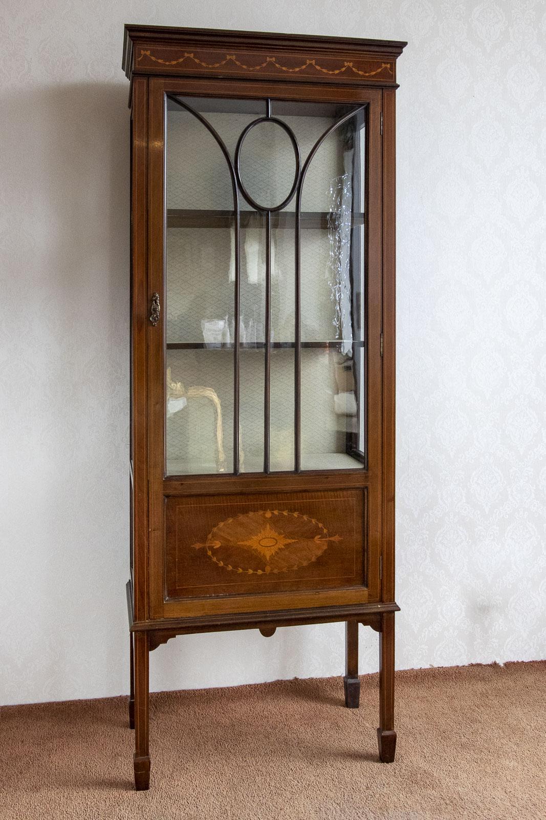 Good Victorian Glass Cabinet in Mahogany with Inlay