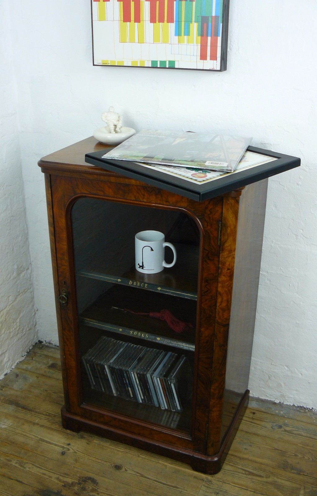 Good Victorian Walnut Glazed Music Cabinet c.1850 (1 of 1)