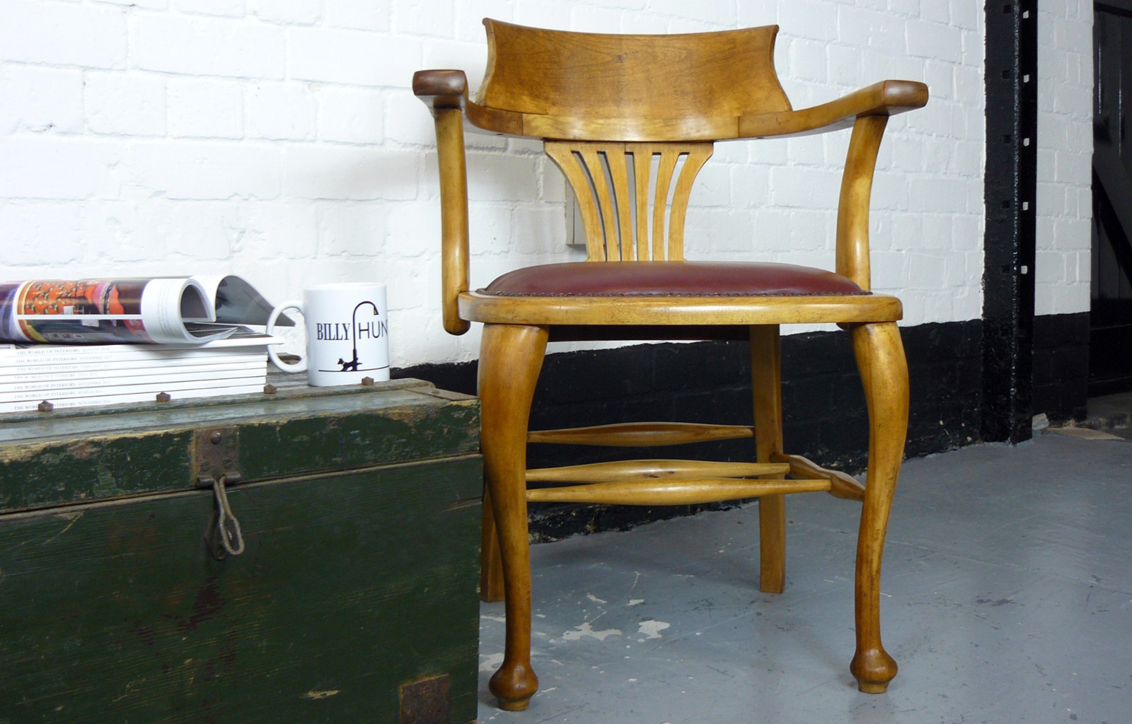 Good Vintage 1930 Office Desk Chair with Leather Seat