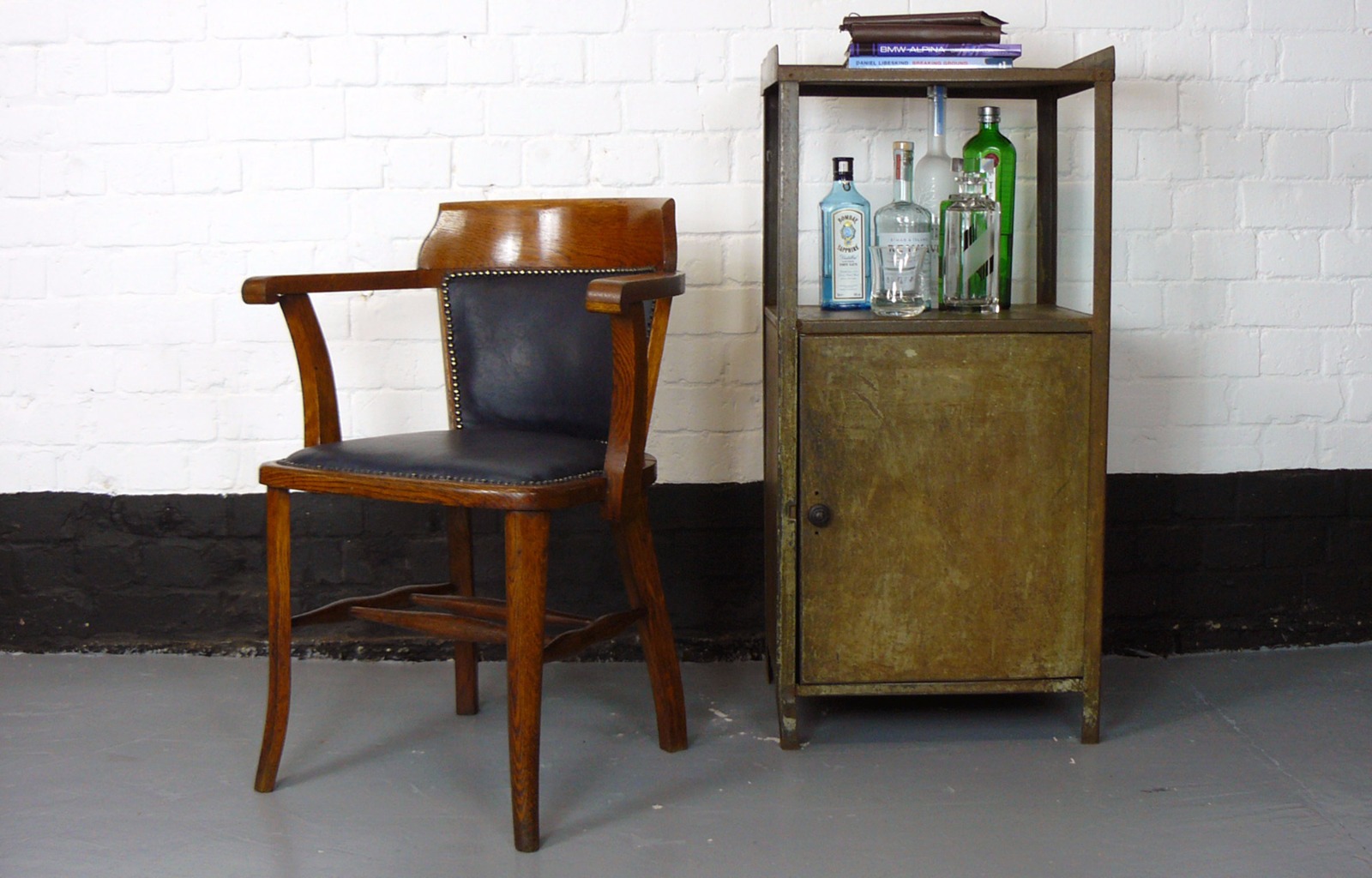 Good Vintage Golden Oak 1920 Office Desk Chair with Blue Leather (1 of 1)