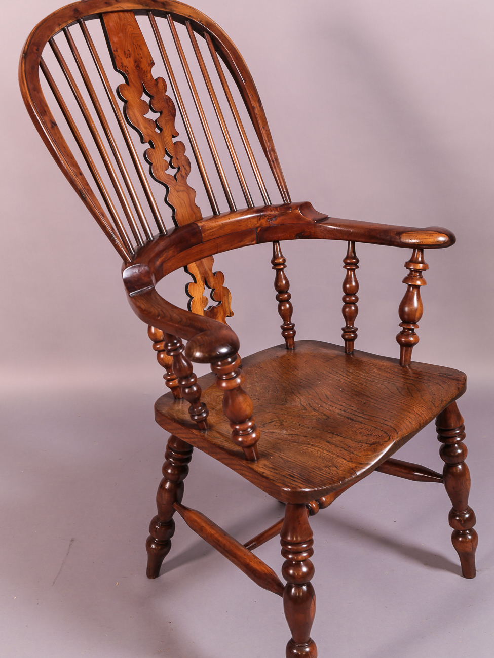 Good Worksop Broad Arm Windsor Chair in Yew Wood