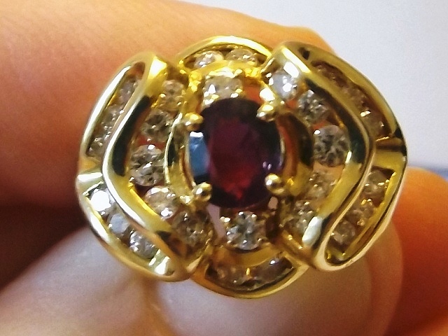 Gorgeous 18ct Yellow Gold Art Deco Diamond & Garnet Ring